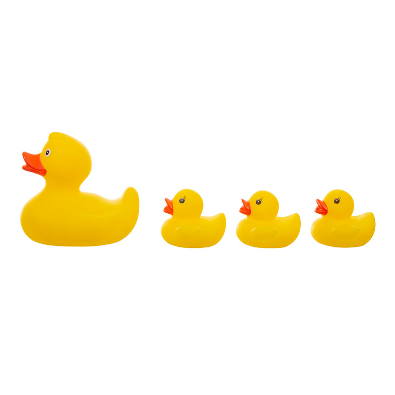 4 śliczne kaczuszki od „akuku”. Każde dziecko musi mieć w kąpieli taką rodzinkę. Nasz zestaw składa się z 4 gumowych zabawek: mama kaczka i 3 małe kaczuszki.