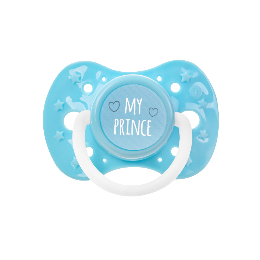 Smoczek uspokajający wykonany z najwyższej jakości, bezzapachowego i bezsmakowego silikonu. Wyposażony w gumkę o symetrycznym kształcie. Zapewnia swobodne oddychanie i połykanie śliny. Smoczek dobrze odpowietrza się, dzięki specjalnym otworom wentylacyjnym na tarczce.