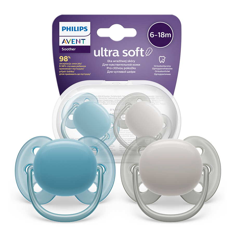 AVENT SCF091/17 Smoczek Ultra Soft 6-18m niebieski/szaryAVENT SCF091/17 Smoczek Ultra Soft 6-18m niebieski/szary