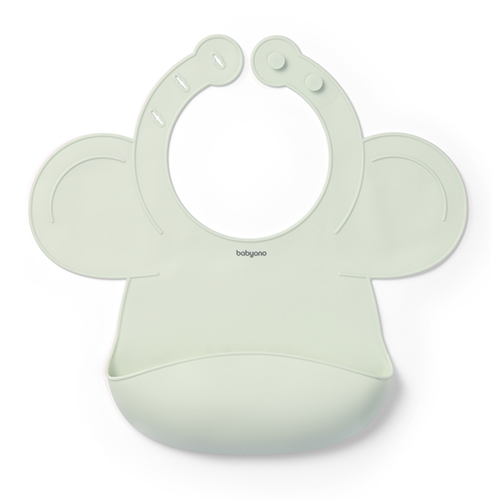 Silikonowy śliniak idealnie dopasowuje się do kształtu ciała dziecka, zapewniając komfort noszenia.