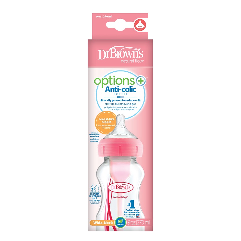 Dr.Browns WB91601 Butelka szeroka szyjka 270 ml PP OPTIONS PLUS różowaDr.Browns WB91601 Butelka szeroka szyjka 270 ml PP OPTIONS PLUS różowa