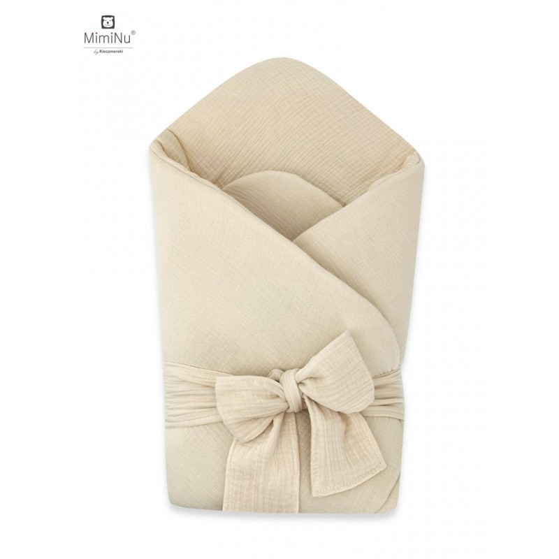 Rożek niemowlęcy wiązany z kokardą MUŚLIN BAWEŁNIANY BAWEŁNA 100% CIEPŁY BEŻ