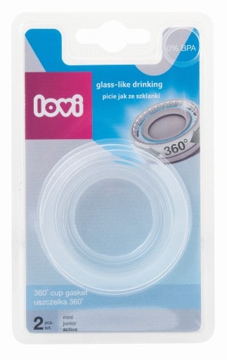 Uszczelki LOVI pasują do kubków 360°: mini i junior. Umożliwiają picie jak ze szklanki, ale bez rozlewania.