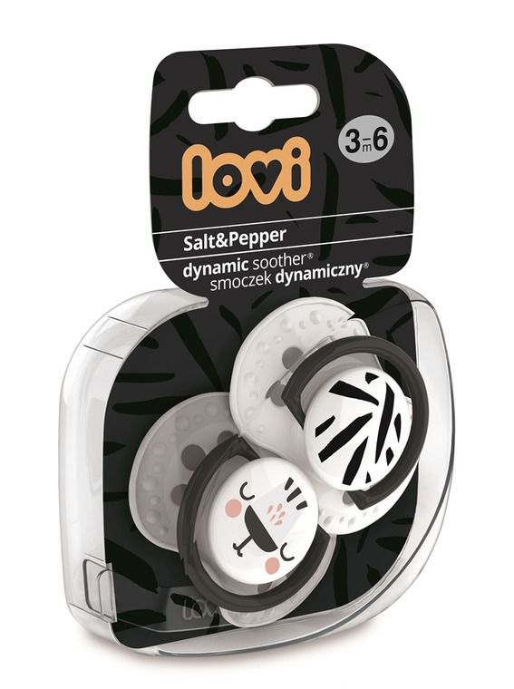 Dynamiczny smoczek uspokajający LOVI został stworzony we współpracy z neurologopedami. Ma unikalną budowę z niejednorodnego silikonu i symetryczny kształt inspirowany brodawką sutkową. Nie zaburza odruchu ssania i naturalnego rozwoju mowy i zgryzu pod warunkiem przestrzegania zaleceń ortodontycznych i neurologopedycznych