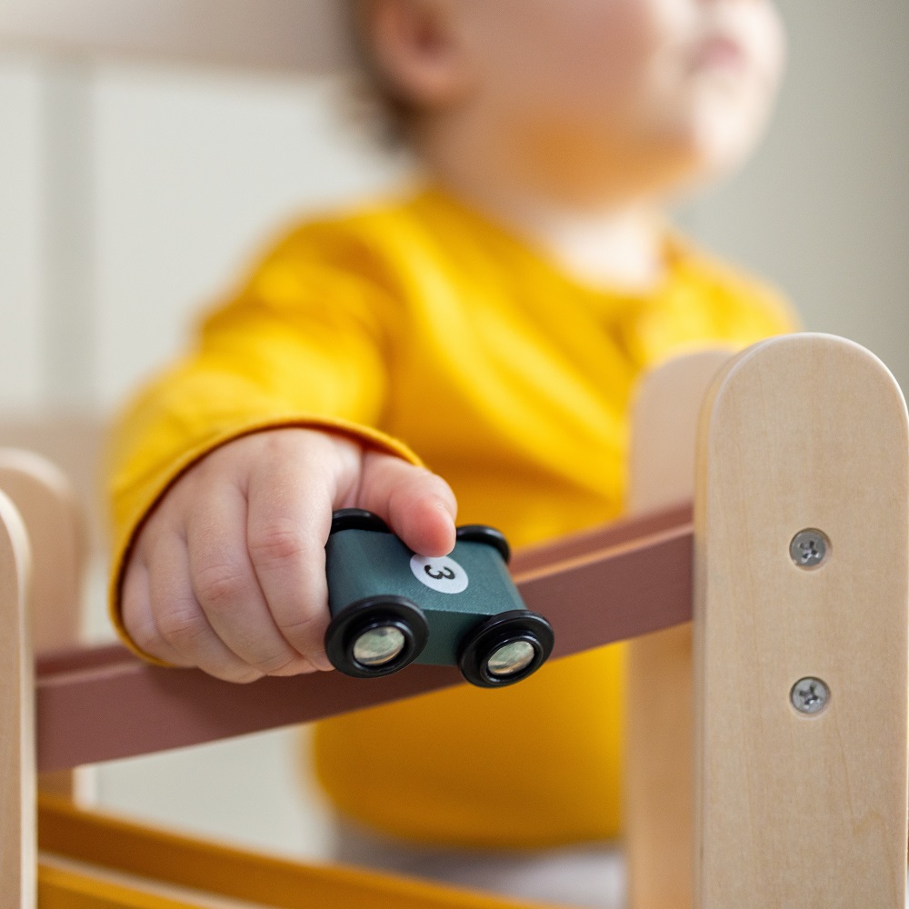 Drewniana zjeżdżalnia dla samochodzików MILKY WAY to wielopoziomowa przygoda dla małych fanów wyścigów. Zestaw składa się z 3 poziomów i 3 małych samochodzików, które można puszczać z góry na dół, zapewniając atrakcyjną zabawę. Samochodziki mogą także służyć do samodzielnych wyścigów a minimalistyczny design zjeżdżalni w delikatnych, stonowanych barwach, idealnie wpasowuje się w dziecięcy pokój.
