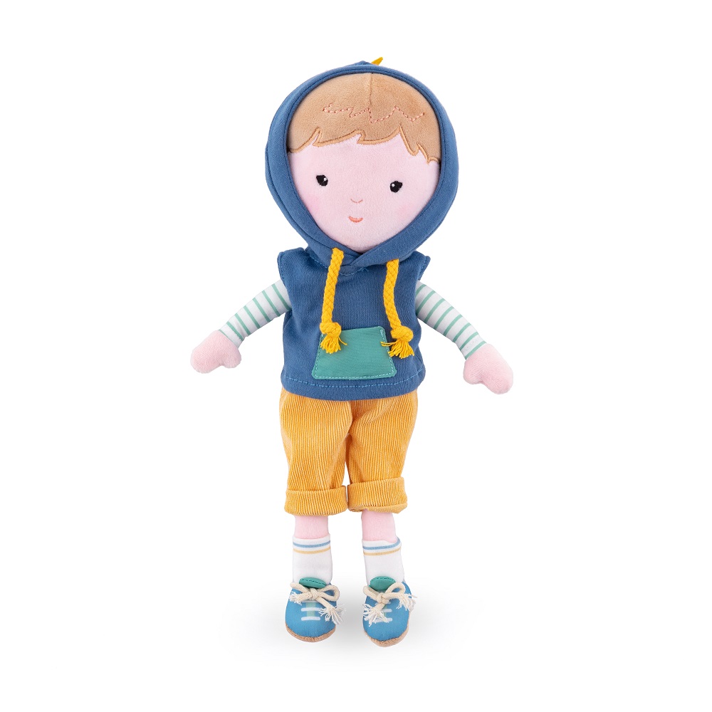 Max jest wykonany z bardzo miłego materiału i nosi ubranka z dopracowanymi szczegółami. Jeśli się zabrudzi, można go po prostu wyprać ręcznie w temperaturze 30°. Pobudza wyobraźnię i fantazję u dzieci oraz rozwija zdolności poznawcze dzięki różnym kształtom i fakturom.
