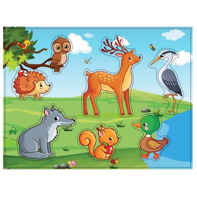 Drewniana układanka puzzle – uchwyty z wizerunkami zwierzątek leśnych. Rozwija w dzieciach spostrzegawczość oraz wyobraźnię.