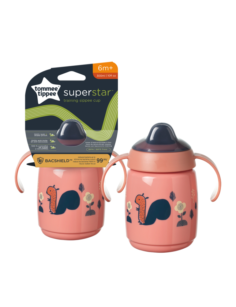 Kubek z uchwytami jest specjalnie zaprojektowany z myślą o pierwszych łykach Twojego dziecka. Pomaga dziecku rozwijać zdolności picia, zapobiegając jednocześnie rozlaniu płynu. Kubek posiada dwuelementowy zawór, który pozwala ograniczyć bałagan do minimum, jest łatwy w czyszczeniu, a jednocześnie nie utrudnia picia. Kubek jest również wyposażony w poręczną, zdejmowaną higieniczną osłonę.
